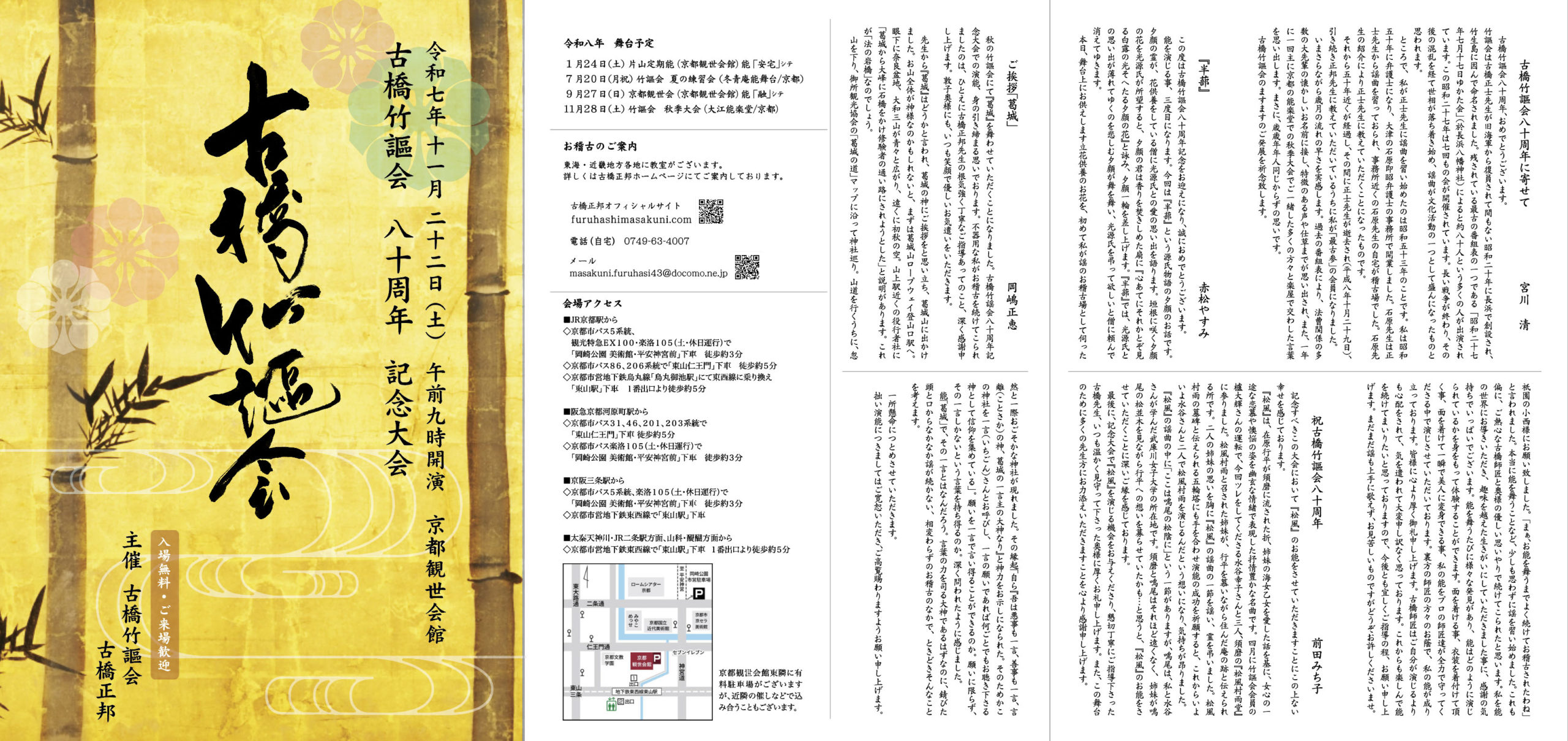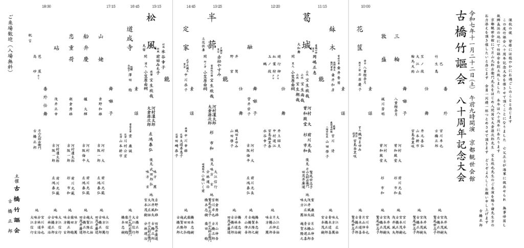 11月22日(土) 古橋竹謳会八十周年記念大会(京都観世会間)